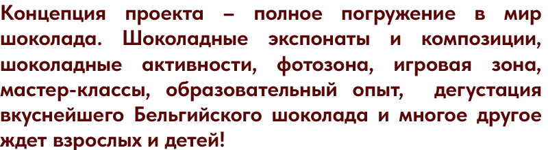 *Льготный билет распространяется на школьников, многодетные семьи и пенсионеров. Дети до 5 лет могут посещать нас бесплатно, в данном случае дегустация шоколада и мастер-класс не предоставляются. Допускается не более двоих детей до пяти лет, в расчете на одного сопровождающего (возраст сопровождающего от 18 лет). Для групповых посещений детками до 5 лет, мы рекомендуем приобретать льготный билет на каждого ребенка. Для многодетных семей и пенсионеров просим Вас предоставлять подтверждающие документы. Сувениры и шоколад приобретаются отдельно.
